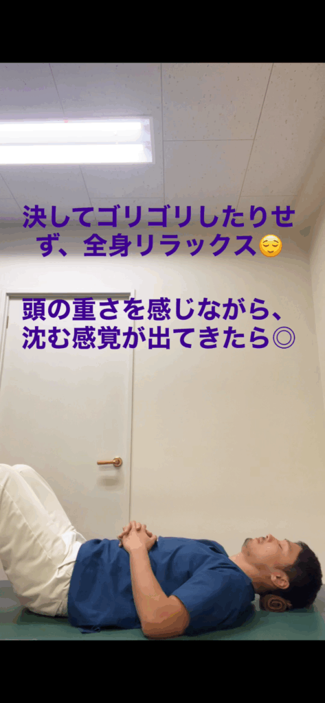 ポイントはゴリゴリしたりしない、体重、頭の重さをタオルに預けるだけです👌